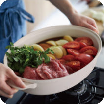 食卓に馴染みやすいオーバルデザイン。直火OKな深鍋付き&お手入れしやすい