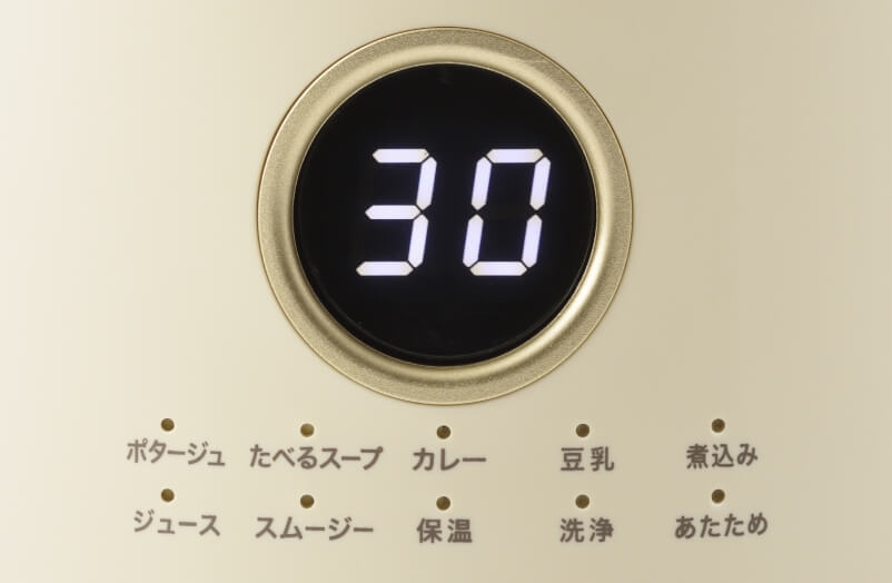 プリセットメニュー:10 (ポタージュ/食べるスープ/カレー/豆乳/煮込み/ ジュース/スムージー/保温/洗浄/あたため) |