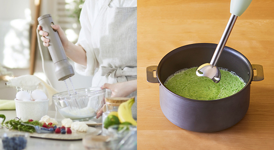 アタッチメントを付け替えれば1台で何役もこなしてくれるマルチなキッチン家電。洗い物がしやすくお手入れも簡単なので気軽に使えるのも嬉しいポイント。スリムで小回りがきき、料理の下ごしらえや離乳食作りまで幅広く活躍します。