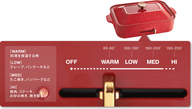 コンセントはマグネット式なので、調理中に万が一引っかかっても簡単に外れ安心です。 温度の上がり過ぎを防ぐ