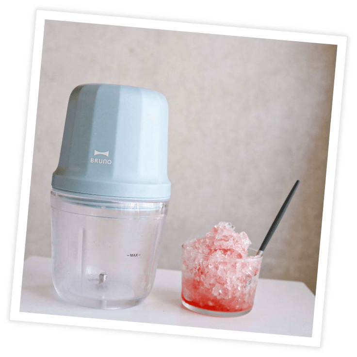 最初は思ったより大きめかな?という印象でしたが、実際に使ってみると食材の容量や使い勝手もちょうど良いサイズ感。充電式でパワーはどうだろうと少し心配でしたが、全く問題なく簡単にシャキシャキのかき氷が完成しました!コードレス&パーツが少ないので、収納スペースが限られるおうちでもすっきり片づけられるのが◎