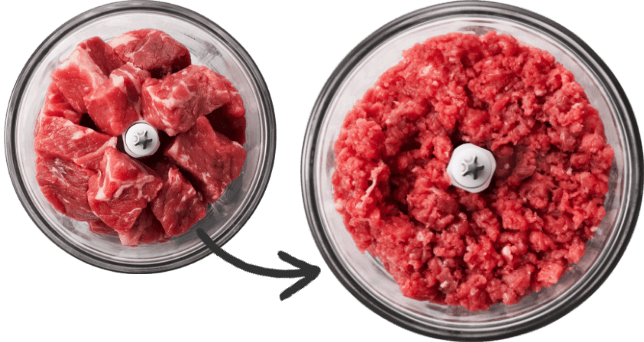 みじん切りや肉をミンチ、ナッツなど硬い食材をペースト状することもできる下ごしらえ向きのキッチン家電です。ミキサーやハンドブレンダーのように、滑らかな液体状に攪拌することは期待できず、「切る」ことに特化しています。
