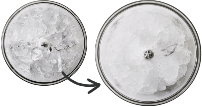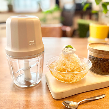 最初は思ったより大きめかな?という印象でしたが、実際に使ってみると食材の容量や使い勝手もちょうど良いサイズ感。充電式でパワーはどうだろうと少し心配でしたが、全く問題なく簡単にシャキシャキのかき氷が完成しました!コードレス&パーツが少ないので、収納スペースが限られるおうちでもすっきり片づけられるのが◎