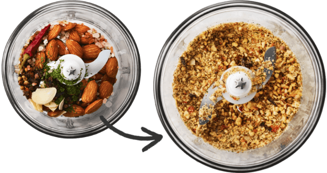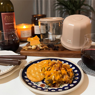 今までのブレンダーではできなかったナッツ類の粉砕も数秒で簡単にクラッシュナッツに。かぼちゃもゴロゴロ感を残した仕上がりに調整し、食感の愉しいサラダになりました。 パッキンや滑り防止のシリコンパッドなどすべてのパーツが分解できるので、使用後も洗いやすく清潔感をキープできるのが◎
