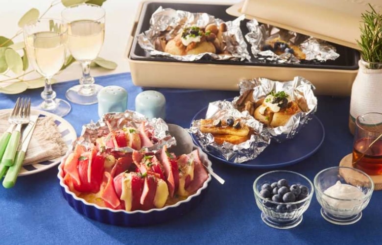 ステーキ肉やアクアパッツァなどアウトドアライクな料理もおてのもの。