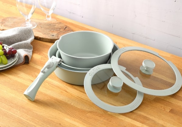 セットは重ねて収納でき、ハンドルも鍋の中に納まるため、