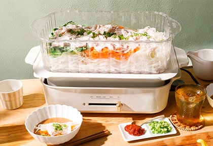 蒸し料理といえばまず「セイロ」を思い浮べる方も多いのではないでしょうか?竹や木でできていて、食材の旨味をしっかり閉じ込め、自然な香りも楽しめるのが魅力。見栄えの良さもポイントの1つですよね。一方で、温度調整やお手入れのしやすさや重視するなら電気蒸し器がおすすめ。BRUNOでは、蒸し料理が愉しめるオプションプレートやマルチな調理器具を豊富にご用意しています。蒸し器には、これ以外にも鍋タイプや電子レンジタイプなど種類は様々。作りたい料理、使用頻度等に合わせてぴったりなものをお選びください。