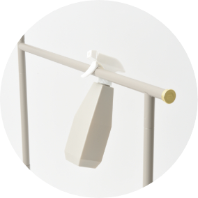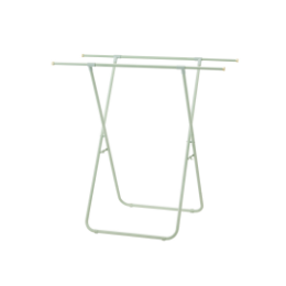 高さ違いのバーで大小さまざまなタオルを干せるタオルスタンド。洗濯ばさみやネット、ファブリックスプレーなど、ランドリーアイテムのちょいかけにもおすすめです。パッと広げてスリムに折りたためるので、使うときと使わないときの切替え動作がスムーズです。