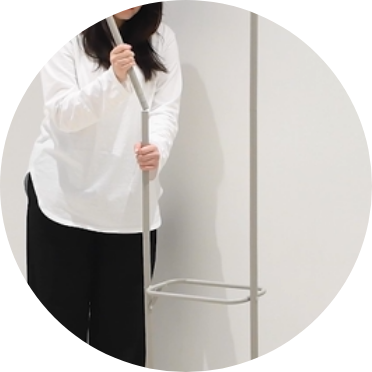 スリムなラックは廊下や玄関など限られたスペースにこそぴったり。天板はイヤホンやキーケースなどの小物置き場に、下のバーは長傘やレインコートを掛けて、サイドのフックにはエコバックやペット用リードなど。外出時に必要なアイテムがコンパクトに整頓できます。