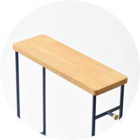 リビングやベッド横ではミニサイドテーブルとしても。天板にはお気に入りの小物を飾ってインテリアを愉しんだり、下のバーは散らかりがちなスリッパの収納したり。アイディア次第で幅広く使えます。