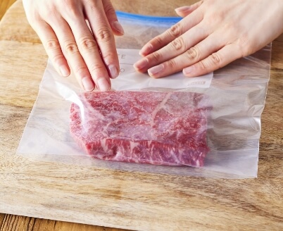 - 食材を保存袋に入れて空気を抜くようにしっかりと密封。
