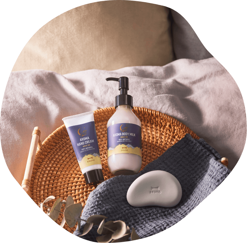 - お風呂とマッサージのあとは眠りにつくだけ。お気に入りのアロマに包まれればゆったりくつろげて、安心感も増すはず。今日も一日お疲れ様でした。