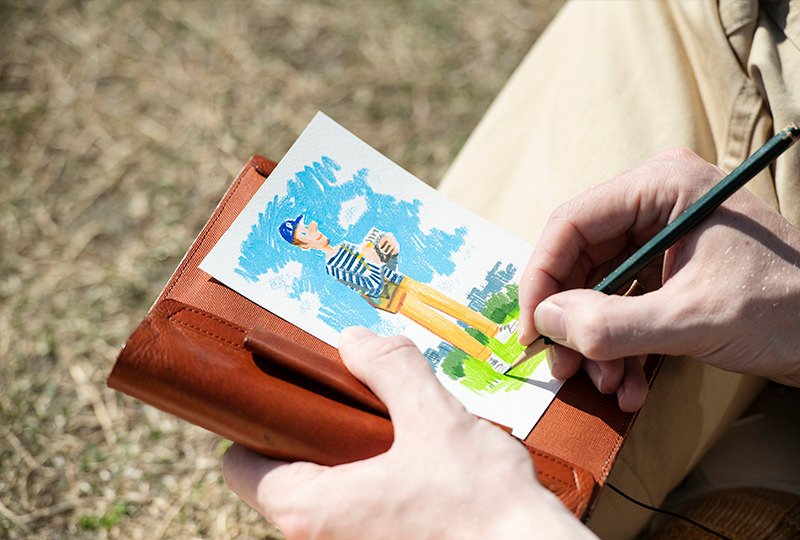 Adrian Hogan(以下Adrian):公園でスケッチしていると、「何してるの?」と自然と人が集まってくることも。紙を渡して「一緒に描かない?」と声をかけたり、子どもたちに「鉛筆削ってくれる?」と頼んだり(笑)。絵を通じて人と人が繋がるのはうれしい!
