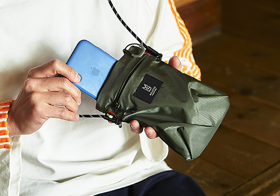 スマホや小さめの財布、パスポートなど必要最低限の手荷物を収納して。首からさっと下げるだけでファッションのポイントに。アウトドアや旅先でも大活躍。