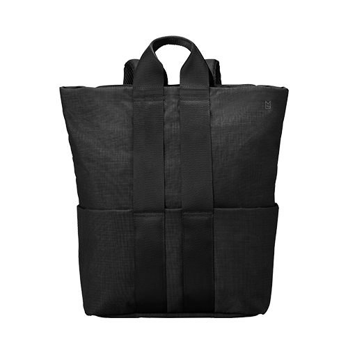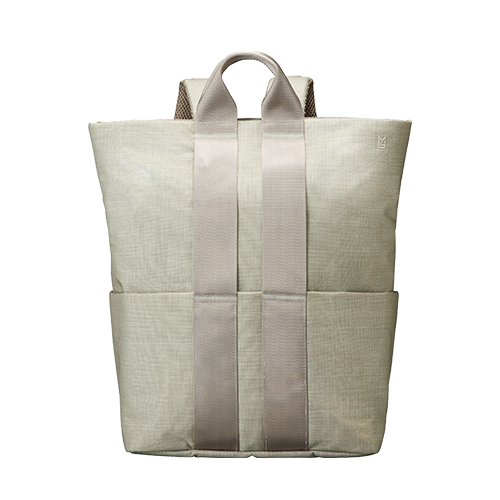 三根:バックパックとトートバッグの2WAYに使えてすごく便利。たっぷりめの深さとサイズ感がちょうどよくて、使いやすいんです。ラップトップが入るクッション付きのポケットはもちろん、外側のポケットにペットボトルが入るのもいいですね。