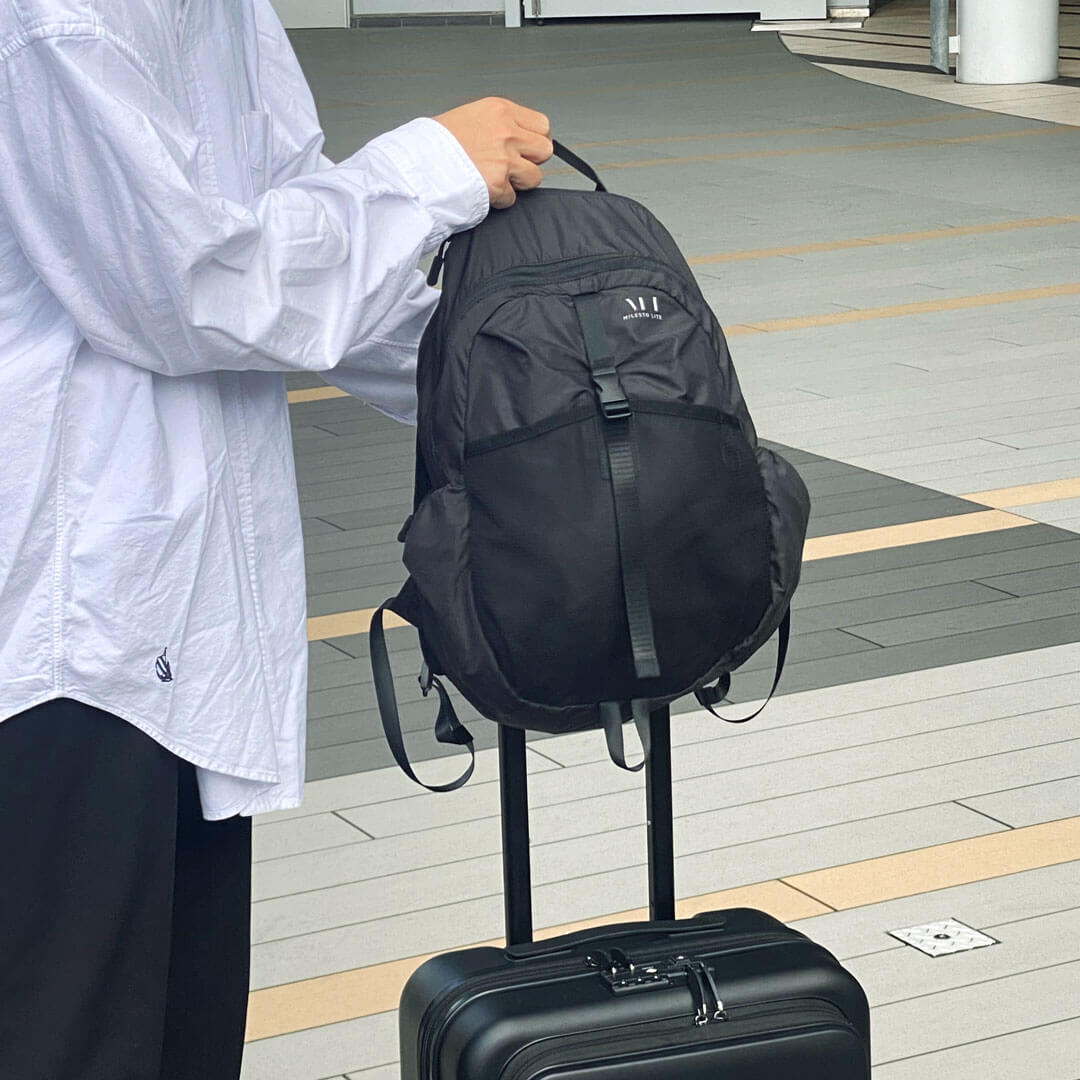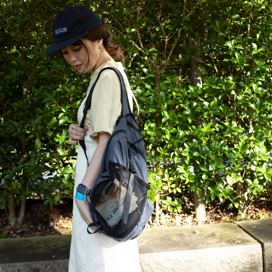 - 余計なパーツは使わずに、無駄を削ぎ落とすことでとにかく軽量化。さらにリップストップ生地を採用し、頑丈ながらとても薄く、コンパクトに折りたたんで持ち運びにも◎