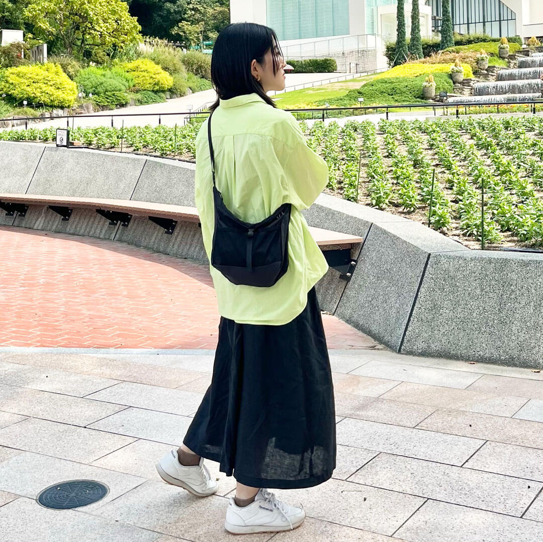 - 貴重品類といっしょに500mlペットボトルも入り、身に着けたときも身体にフィットする、収まりのいいサイズ感です。メイン収納部分にはポケットを1つ配置。ショルダーベルトを外して本体を繋げれば、そのままハンドバッグのように持ったり、ポーチやバッグインバッグとして使ったり、シーンに合わせてメイン使いにもサブ使いにも重宝するアイテムです。