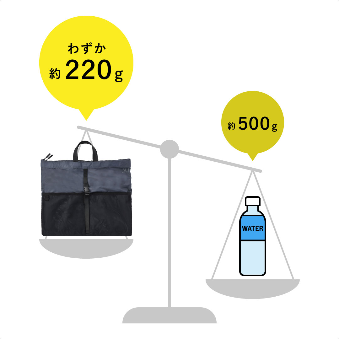 - 余計なパーツは使わずに、無駄を削ぎ落とすことでとにかく軽量化。さらにリップストップ生地を採用し、頑丈ながらとても薄く、コンパクトに折りたたんで持ち運びにも◎