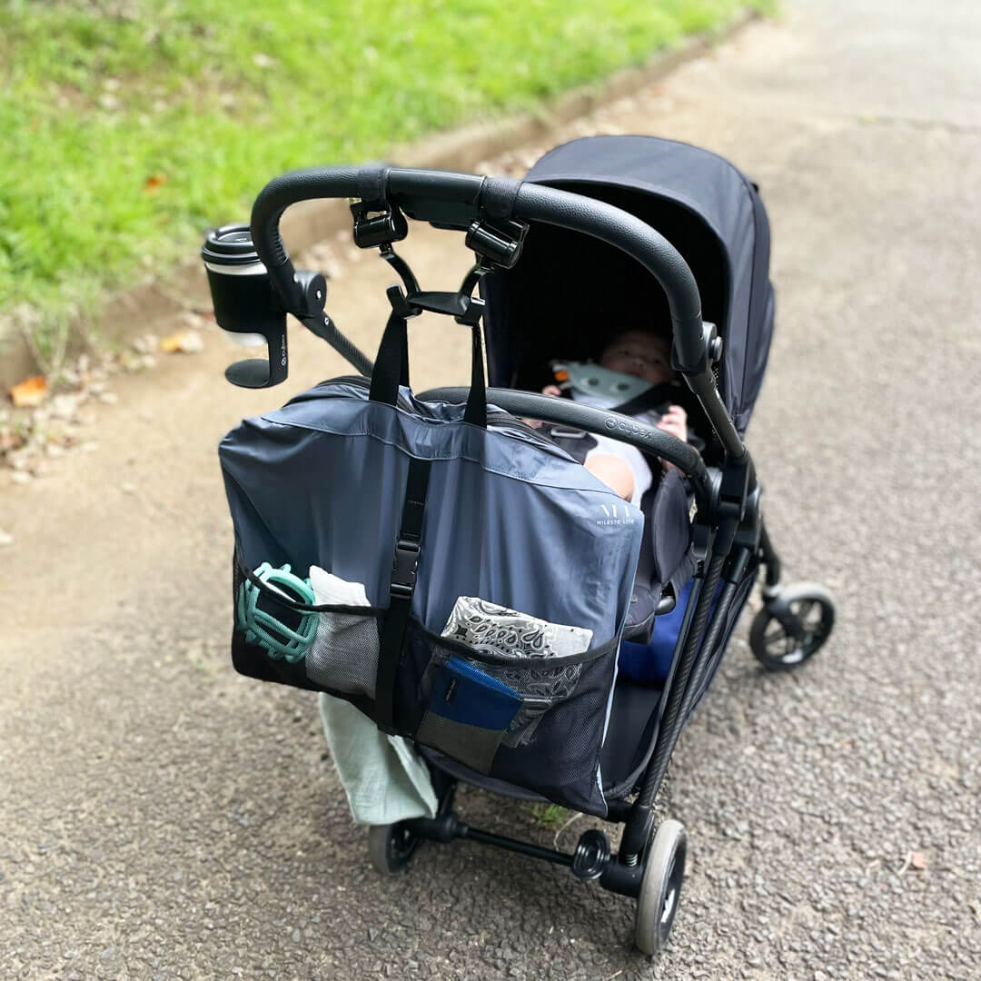 - 肩掛けも手持ちも可能な便利な2WAY仕様のバッグ。ショルダーストラップには取り外し可能な肩当て付き。ハンドルは短めなので、ベビーカーのフックに引っ掛けてベビーカーバッグとしての利用もおすすめです。メイン収納部分には、A4サイズの物も入る2つの大きめポケット、ボトル類を立てたまま収められる細めのポケットを配置。