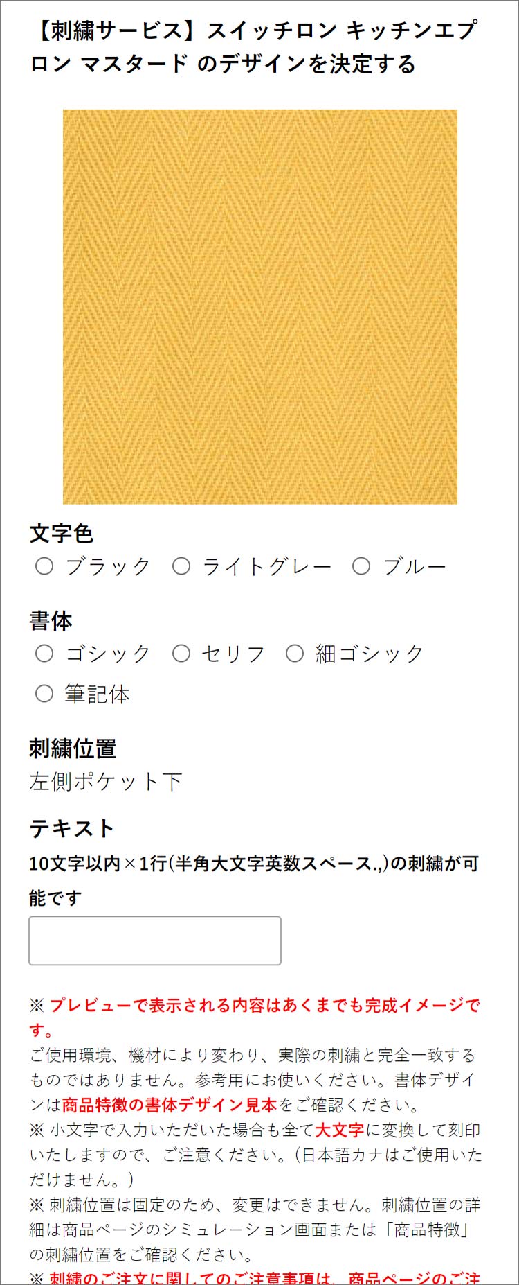 ※刺繍サービス付の商品価格には刺繍料金550円(税込)が含まれています。