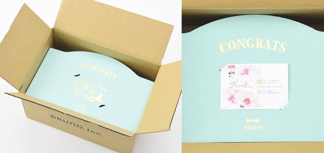 BRUNOの一部商品※では、お祝いの気持ちをおしゃれなデザインのメッセージとともにお贈りいただける