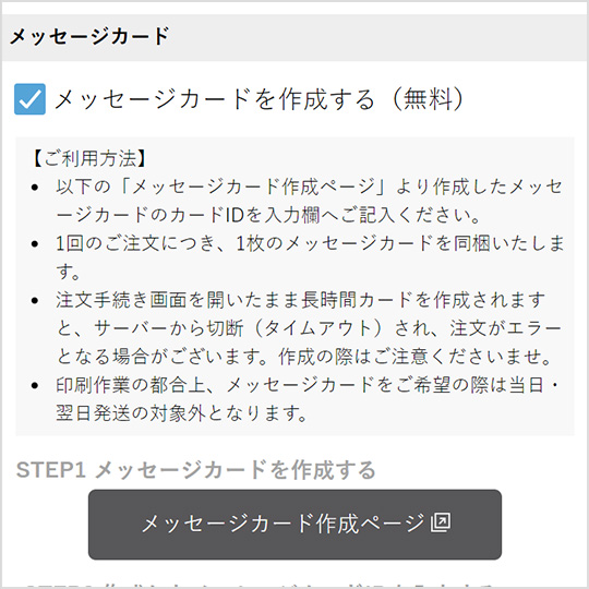 - 箱内にデザイン入りのメッセージボードが付きます。メッセージカードサービス(無料)のご利用で、ギフトカードを中央にセットして一緒にお届けいたします。
