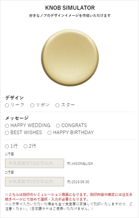 ※別途ノブを単品でご購入、もしくは商品本体とセットでのご購入(+税込1,100円)が必要です。(標準で添付しているノブへの刻印は承りかねます。)